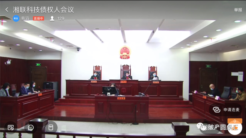 2019年11月,我們團隊被長沙市中級人民法院指定為湖南湘聯節能科技股份有限公司、湖南湘聯科技有限公司協同重整案的破產管理人。受新冠肺炎疫情影響,債權人復工時間不一或多居家避疫,為最大限度減少人員流動和聚集,同時推進拯救企業,長沙中院堅持疫情防控和拯救企業兩手抓、兩手硬,并于3月初決定以網絡形式合并召開兩案第一次債權人會議。筆者作為破產管理人團隊代表,全程與“釘釘”平臺對接,協調網絡債權人會議各項事務,幸運的是,此次債權人會議圓滿完成各項議程,達到預期效果。