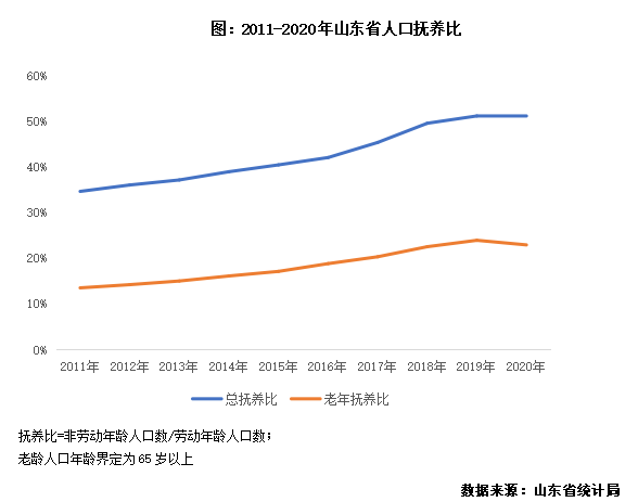 老年撫養比不斷提升,老齡化壓力較大。作為全國老年人口最多、老齡化程度較高、應對人口老齡化任務較重的省份,2020年山東省65歲以上老年人口占比達到了15.13%,達到1536.4萬人。從人口撫養比來看,老年撫養比持續上升。預計到2035年,山東省的全省老年人口占比將達到30%,進入深度老齡化社會。對房地產開發企業而言,老齡化對住宅功能設計方面提出了要求,以及在康養板塊有較多的機遇。但從另一方面來說,老齡化也有可能帶來的是房屋購買需求減弱的問題。