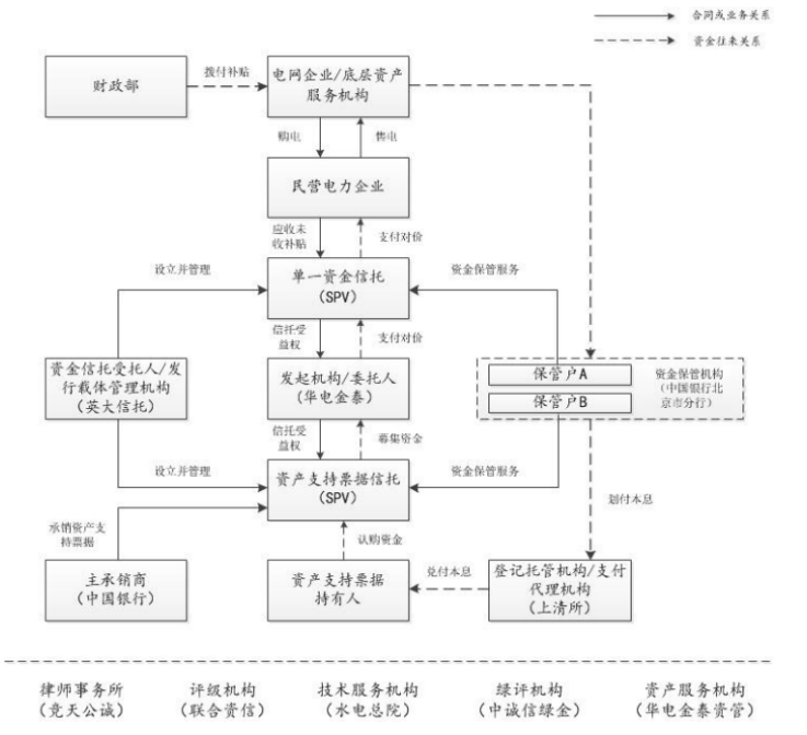 從名字中就能感受到項目的獨特之處,目前市場上主要的國補ABN項目發(fā)起機構(gòu)一般都是五大發(fā)電集團或旗下保理公司,而這一單的發(fā)起機構(gòu)是華電金泰,這是一家經(jīng)常作為并表ABN發(fā)起機構(gòu)的公司,而且與融資主體股權(quán)上沒什么關(guān)聯(lián)關(guān)系。
