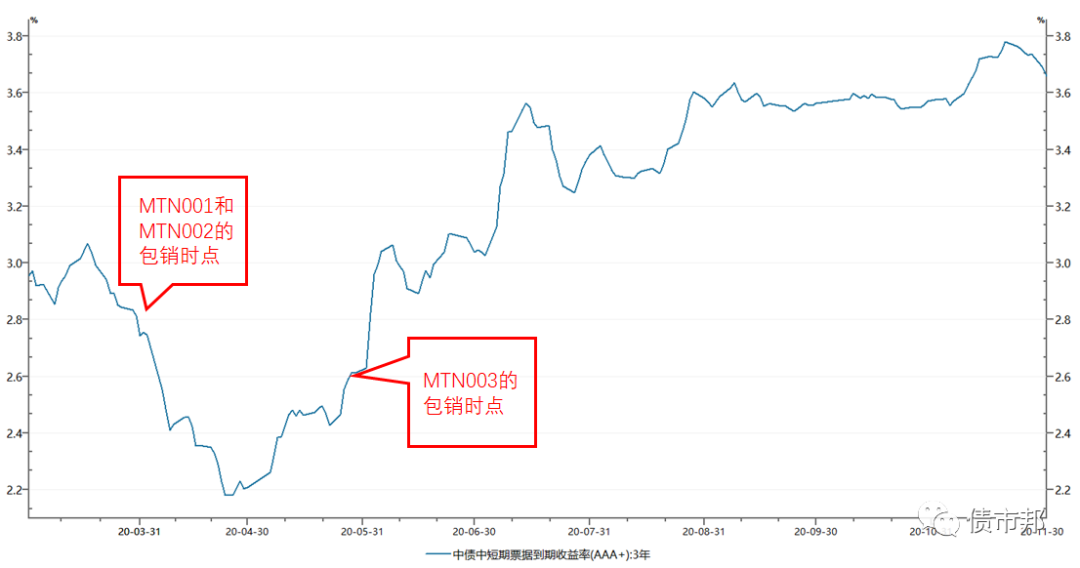 要說MTN003的主就比MTN001和MTN002的主承差嗎?其實并沒有,如果將包銷時點換一下,將MTN001和MTN002的主承放到MTN003的包銷時點,他們所做出的選擇也大概率是一樣的。包銷的規則和包銷戶的考核機制決定了他們的行動模式。