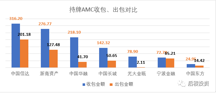 2.4、持牌AMC收包、出包金額對比分析(單位:億元)