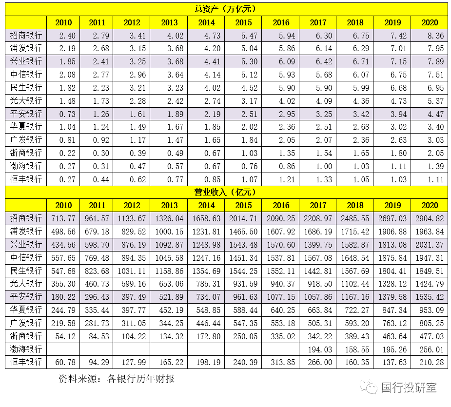 (2)2020年5家股份行的營收出現(xiàn)了微幅增長,分別為民生銀行(2.50%)、浙商銀行(2.89%)、浦發(fā)銀行(2.99%)、中信銀行(3.81%)和廣發(fā)銀行(5.52%)。