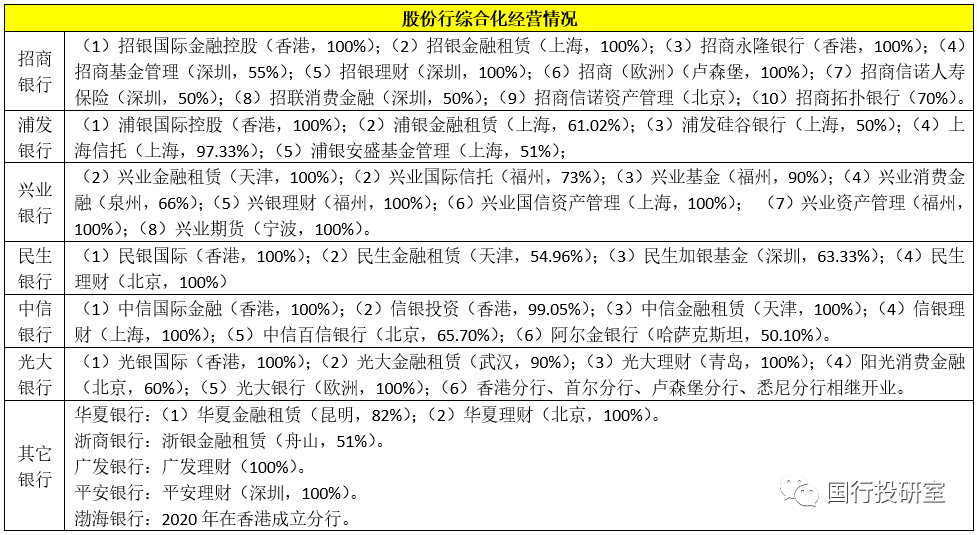 從綜合化經(jīng)營來看,股份行之間分化最為明顯。