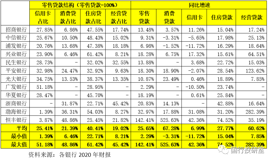 (3)對于情況比較特殊的恒豐銀行來說,其2020年零售貸款增長較為迅猛(增速高達(dá)142.41%),其中消費貸款猛增525.63%、住房貸款增74.52%、信用卡增42.36%。
