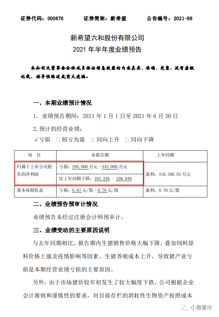 值得注意的是,這是新希望首次出現半年報預告虧損。
