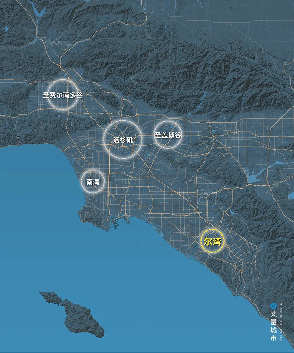 實際上,二戰之后,與橘郡緊鄰的洛杉磯縣,人口迅速增長,其農場被細分并賣給了建筑商,導致洛杉磯周邊的圣費爾南多谷、南灣和圣蓋博谷都出現了拼湊式的城市發展模式。