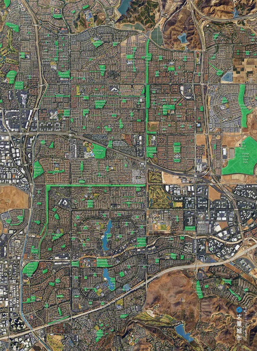 「產業新城」的標簽往往讓人們忽視了爾灣「生態新城」的身份。作為一個僅僅發展50年的郊區新城,它有著卓越的自然生態條件——美國國家自然地標、面積達3.7萬畝的爾灣牧場,同時還被評選為美國第四大綠色城市。