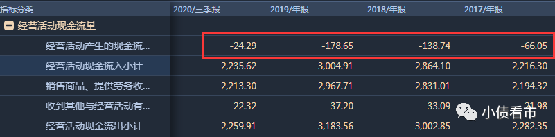 不僅經營業績欠佳,蘇寧易購的經營獲現能力也在持續惡化。