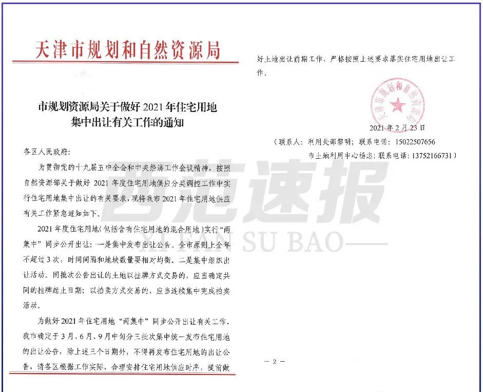 與此同時,天津市已經走在了前列,發布了關于土地集中出讓的工作通知,確定在每年的3月、6月、9月中旬進行三次土地集中出讓公告,除了上面三次日期外,不會再有任何土地出讓的消息。如下圖: