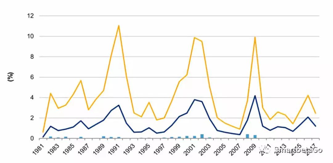 宏觀維度看,實際違約和經濟波動之間存在著長期穩定的協整關系,如下圖四。信用評級的分析框架中宏觀維度必不可少,同時不同宏觀環境下的信用違約特征也不同,比如今年以來上市公司信用違約明顯增多,主要系市場股價下跌、監管政策上的減持新規、股質新規以及前期公司債擴容多維度因素導致。