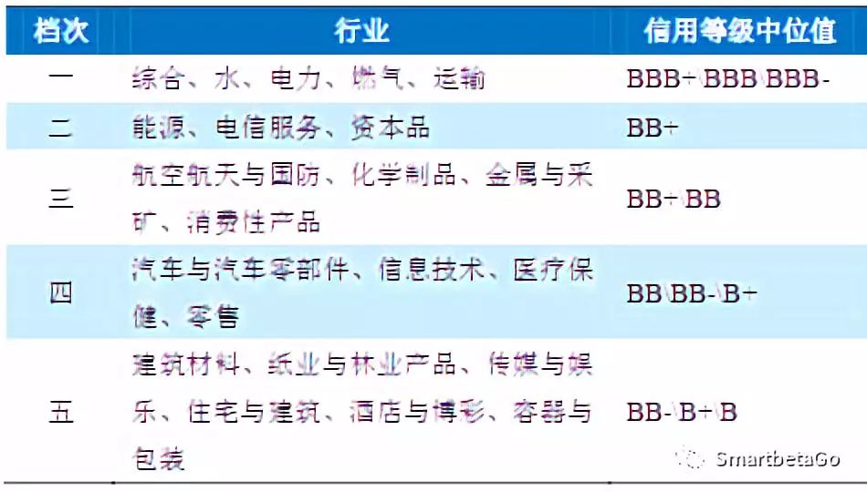 行業維度看,大致可以分為三塊工作。第一是充分借鑒賣方行業研究的成果。第二是針對行業信用風險,抓住各行業顯著特性,根據行業景氣度及行業違約概率(參見:標普每年出具的《Annual Global Corporate Default Study》)確定行業中長期級別中樞。可參考穆迪、標普、惠譽給予不同行業敞口不同信用評級中樞的做法,如下圖五:
