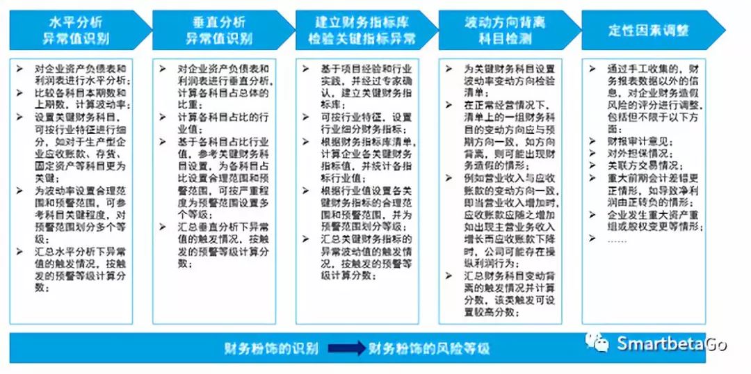 財務維度看,可以通過水平分析異常值、垂直分析異常值、建立分不同行業的財務指標庫,建立財務智能化分析、以及財務粉飾的風險評分,如下圖七: