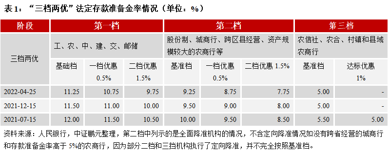 央行公告一般提示降準不含已執行5%存款準備金率的金融機構。此次更是新增定向降準,對沒有跨省經營的城商行和存款準備金率高于5%的農商行,在下調存款準備金率0.25個百分點的基礎上,再額外多降0.25個百分點。這跟我國“三檔兩優”準備金率基本框架有關。