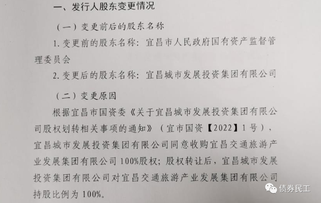 6、根據宜昌交通旅游產業發展集團有限公司(主體信用等級AA)2022年1月25日的公告,宜昌城市發展投資集團同意收購宜昌交通旅游產業發展集團100%股權;股權轉讓后,宜昌城市發展投資集團對公司的股權比例為100%。宜昌城市發展投資集團(主體信用等級AA+),存續債券金額164.50億元。