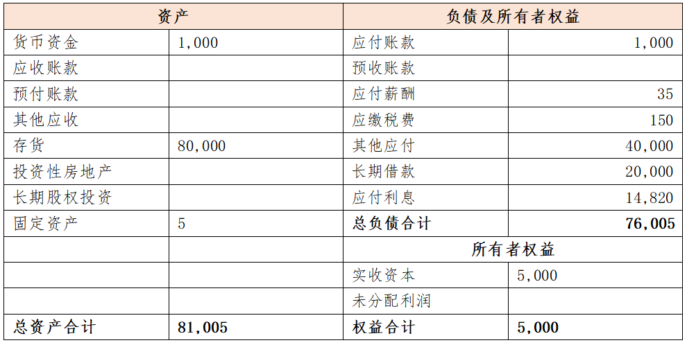 案例背景:某項目公司下有100畝住宅用地,開發商拿地后未開發,欲轉讓項目公司100%股權,土地轉讓報價為1000萬/畝,對方提供項目公司最近一次資產負債表如下表所示:
