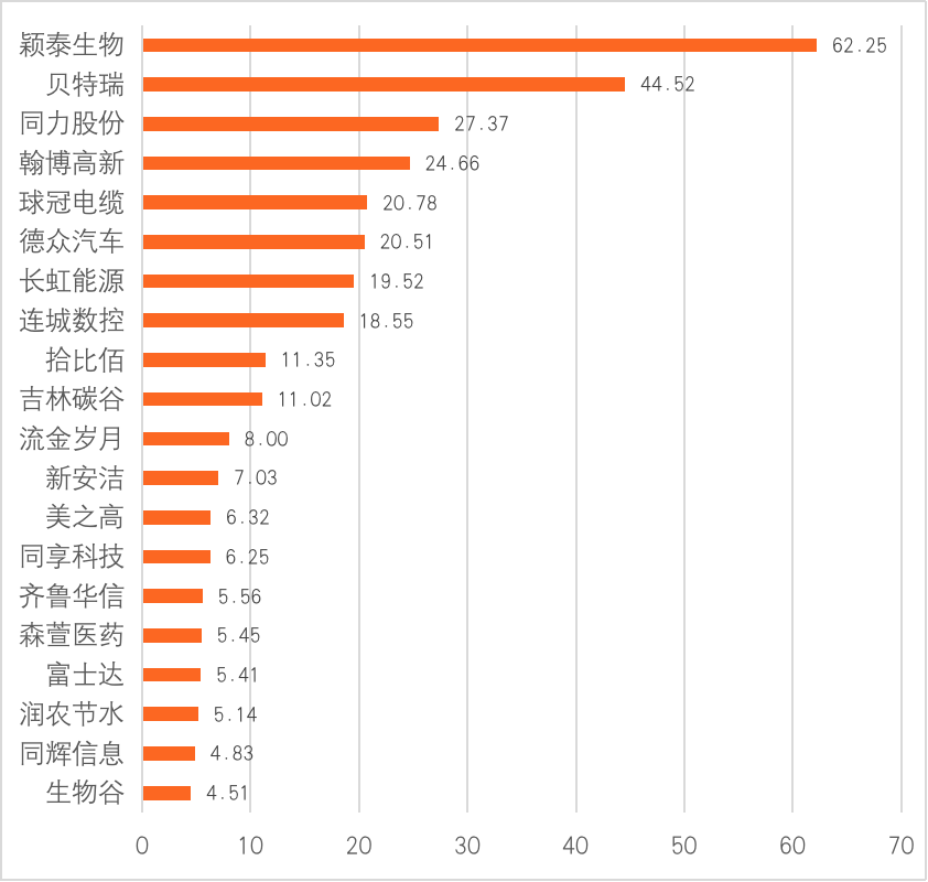 圖5 精選層2020年凈利潤前20名企業(yè)及數(shù)據(jù)(億元)