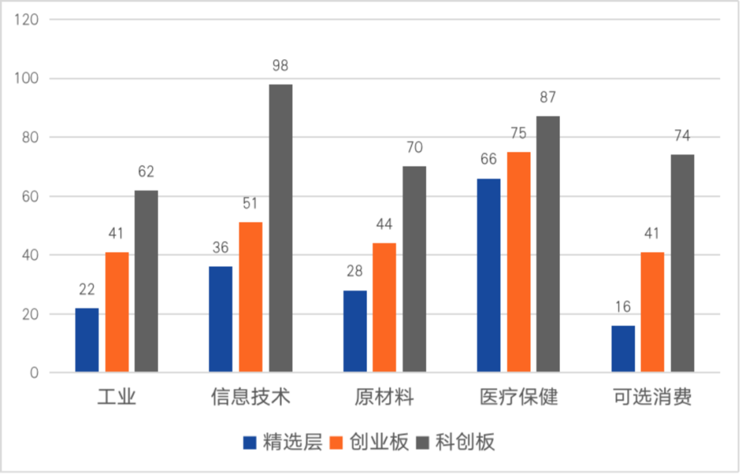 圖2 精選層掛牌企業(yè)行業(yè)分布情況(家)