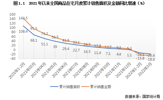 自去年下半年以來,房地產市場熱度便一直走低,在多家規模房企遭遇流動性困難后,客戶購房觀望情緒嚴重,樓市成交規模累計同比增幅持續下降。在房企遭遇融資難、回款難等影響下,地市熱度也持續走低,2022年一季度成交規模不及去年同期五成。