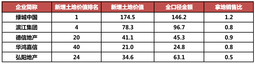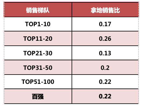備注:拿地銷售比:各梯隊新增投資價值/各梯隊全口徑銷售金額