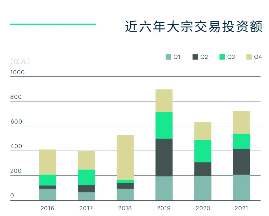 據(jù)第一太平戴維斯數(shù)據(jù)顯示,2021年中國大宗投資市場完成交易總額達(dá)人民幣3,645億元,同比上升28%。