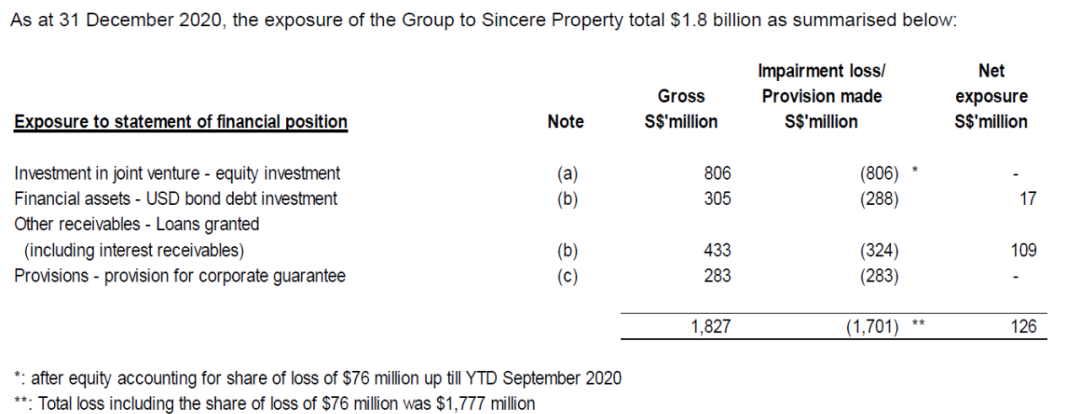 2021年2月26日,CDL發布2020年業績報告,鑒于協信遠創目前的財務狀況,將投資于協信的總共18.27億新加坡元(折合人民90億元)一次性計提減值損失17.8億新元(折合人民幣89億),這次計提導致CDL全年虧損93億元之巨,是58年歷史上最差的業績。