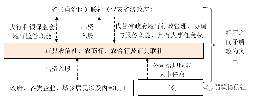 但是也應認識到,農信體系本身是省聯社的入股股東,但省聯社卻依靠省級政府的授權反過來履行對農信體系的行政管理職能,這一畸形的治理架構顯得與現代公司治理體系格格不入。特別是,隨著農信社、農合行逐步向農商行轉型,意味著農信體系的公司治理機制將逐步向股份制商業銀行靠攏,公司治理與運營更為規范,使得代表行政管理職能的省聯社與“三會一層”為代表的公司治理體系之間存在天然矛盾,導致三會一層很容易形同虛設、決策流于形式。