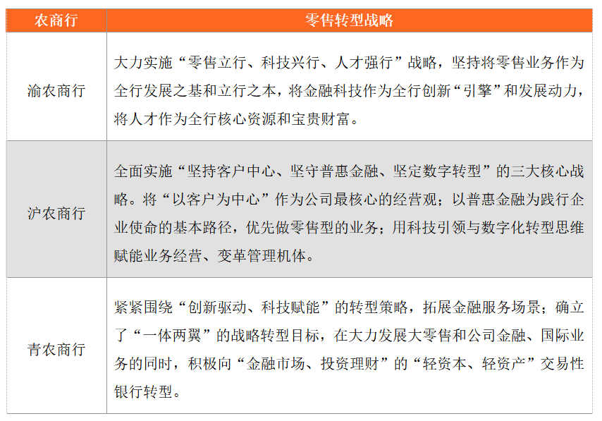 表3:農(nóng)商行零售戰(zhàn)略對(duì)比