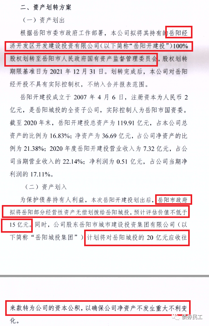2、岳陽市城市建設(shè)投資有限公司公告,將公司持有的岳陽經(jīng)濟(jì)開發(fā)區(qū)開發(fā)建設(shè)投資有限公司的股權(quán)無償劃轉(zhuǎn)給岳陽市國資委。與此同時,岳陽市政府?dāng)M將部分資產(chǎn)劃轉(zhuǎn)給岳陽市城市建設(shè)投資有限公司,保障公司的盈利能力和償債能力不受此次資產(chǎn)無償劃轉(zhuǎn)的影響。