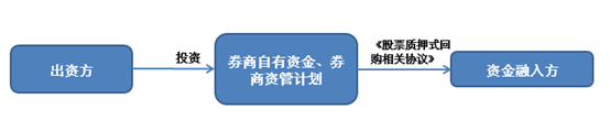 股票質(zhì)押式回購交易業(yè)務(wù)包括初始交易和購回交易兩次交易和兩次結(jié)算,業(yè)務(wù)模式為: