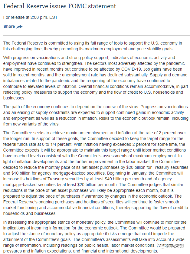 2021年12月14-15日,美聯(lián)儲召開了年內(nèi)最后一次議息會議,并于12月16日凌晨兩點(diǎn)(北京時間)發(fā)布會議決議,現(xiàn)解讀如下: