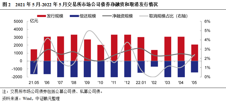 2. 5月份交易所公司債券凈融資636.20億元,共取消發行債券3只[1]
