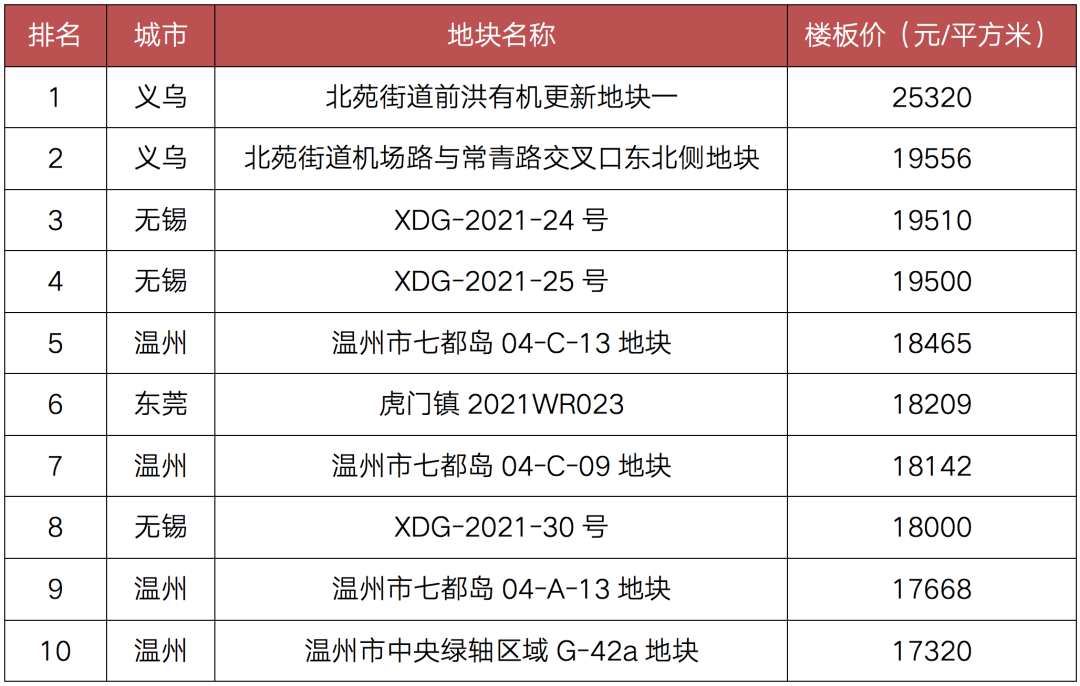 表:2021年8月成交土地單價(jià)排行榜