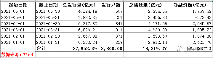 但是如果從城投公司的債券凈融資數(shù)據(jù)來看,2021年上半年凈融資金額為9,633.12億元,這個凈融資金額其實真的是很高了,超出了債券民工的預料 。(本文分析數(shù)據(jù)均來自于wind資訊,因為城投公司及信用債券的統(tǒng)計口徑有所差異,最終數(shù)據(jù)可能存在差別)。