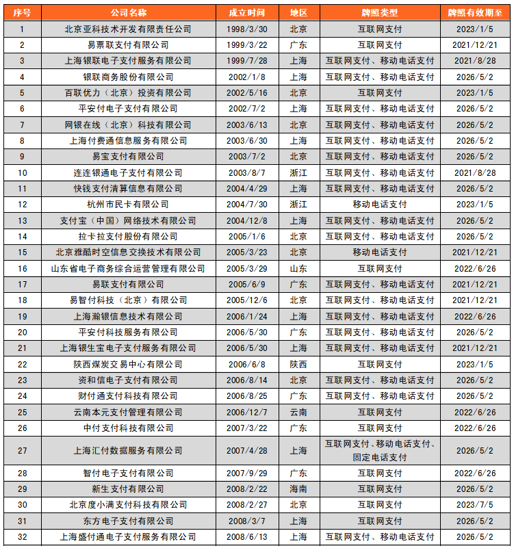 原標(biāo)題: 第三方支付機構(gòu)大全(2021)
