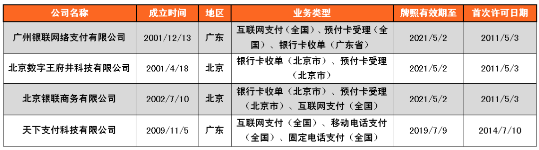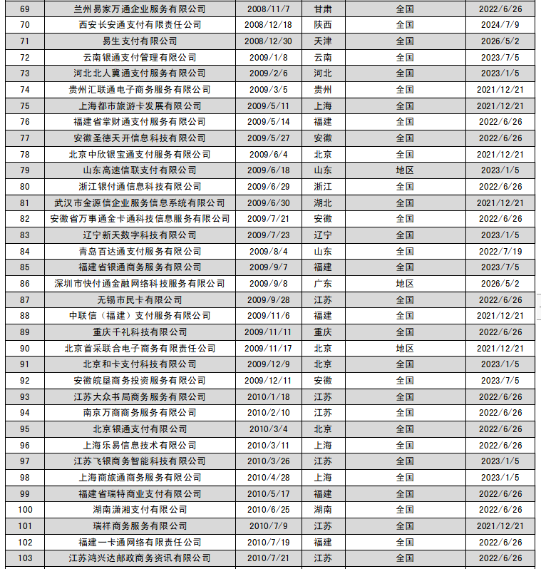2021年5月13日,央行官網(wǎng)公布首批27張支付牌照續(xù)展結(jié)果,支付寶、財付通、銀聯(lián)商務(wù)、資和信、銀盛支付、通聯(lián)支付等24家支付機構(gòu)全部通過續(xù)展。廣州銀聯(lián)網(wǎng)絡(luò)支付有限公司、北京數(shù)字王府井科技有限公司、北京銀聯(lián)商務(wù)有限公司擬與其控股股東銀聯(lián)商務(wù)股份有限公司開展整合工作,向人民銀行提交了中止續(xù)展審查申請,在中止審查期間繼續(xù)開展業(yè)務(wù)。