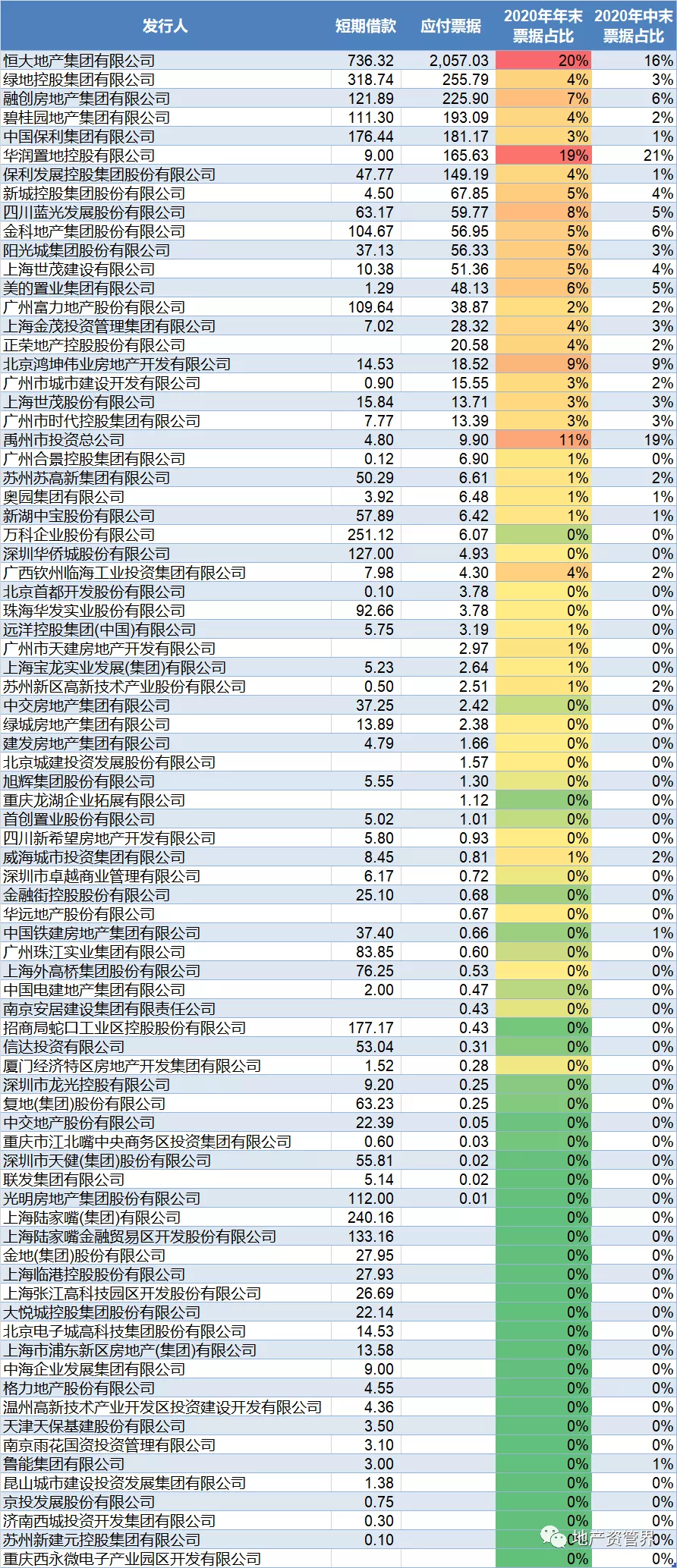 一、如果房企商票頻頻違約, 那么商票后續(xù)的發(fā)行會面臨較大的沖擊和壓力,整個地產行業(yè)的信用乃至其他融資渠道也會受沖擊。二、目前,下游建材、輕工等行業(yè)供應商的交易訂單中, 房企等企業(yè)訂單占比較大。一旦出現商票違約,勢必會對下游行業(yè)造成嚴重的沖擊。而房企通過商票融資工具的對應成本也是存在非常大的差異。典型房企如中南建設、藍光發(fā)展和綠地控股 2020 年末應付票據占有息負債的規(guī)模為 13.48%、11.66%和 8.44%,應付票據占比處于前列。從房企商票年化利率數據來看,大多數重點房企的商票年化利率為 10%-20%。現金流較為緊張的房企如中國恒大、藍光發(fā)展其部分商票年化利率高達 36%,遠高于其融資成本。而杠桿率較低,債務風險較低的房企如華潤置地,其商票年化利率低至4%。2020年,房企商票承兌規(guī)模總體上呈井噴式增長。據統(tǒng)計,2020年頭部房企商票承兌余額達到3355.74億,較2019年增長了36.59%,占全國商票承兌總量的9.27%。這其中以恒大的商票發(fā)行規(guī)模最高,達到了2052億,而30億以上商票存續(xù)的房企達到17家。其中不乏融創(chuàng)、陽光城、富力等高杠桿企業(yè),也包括建發(fā)、保利等國企。顯然,商票對于開發(fā)商而言不僅僅是一種融通工具,更是降杠桿的有效途徑。隨著市場周期下行,近些年來,頻繁出現開發(fā)商商票違約情形。需要明確的一點,商票本質上是依托于開發(fā)商的主體信用,而商票的違約也就意味著信用體系出現問題。網上已有多個持票人公開了拒付的票據證據。可以看到拒付情況或存在于恒大各地的子公司:恒大集團聲明中也沒有直接否認這一傳聞,表示“針對我司個別項目公司存在極少量商票未及時兌付的情況,集團高度重視并安排兌付”。恒大裸奔式發(fā)展導致大規(guī)模的商票違約,無疑是此次央行將商票納入重點監(jiān)測范圍的導火索。更有甚者,據某平臺爆料,某閩系房企SM 子公司“淮南恒升天鵝灣置業(yè)有限公司”2021年6月1日到期的商業(yè)承兌匯票,尚未兌付。近期項目到期商票所涉及的開戶銀行賬戶資金,因一起建設工程施工合同糾紛訴訟處于司法凍結狀態(tài),導致部分已到期商票銀行暫無法兌付。但該批商票,部分已經多次背書轉讓,最終持票人收款信息難以獲取。“大”如恒大,“強”如SM,不同程度的媒體報道或是捕風捉影,或是見微知著。以上僅是房地產公司與行業(yè)上下游之間商票違約的一個縮影而此次,商票納入強監(jiān)管,會讓“三道紅線”的效果更加明顯。