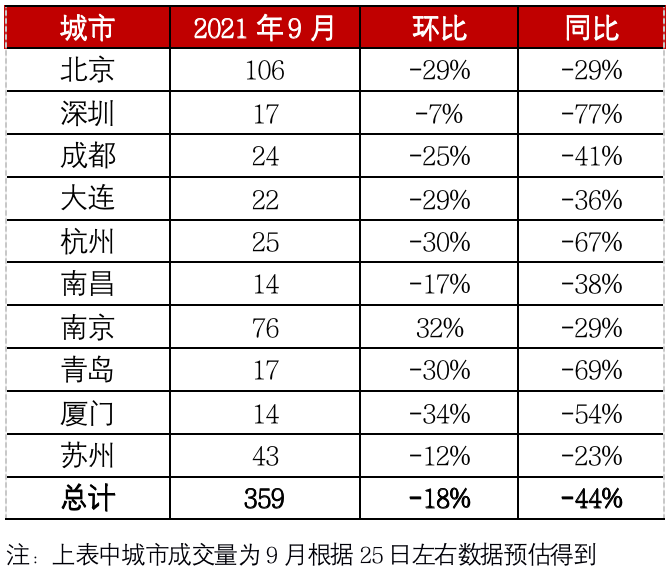 表:2021年9月28個重點城市新建商品住宅成交情況(單位:萬平方米)