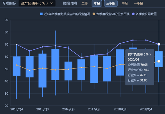 短期償債能力方面,紫光的現(xiàn)金負(fù)債比率一直處于行業(yè)低位,到今年第三季度已接近歷史最低點,短期償債能力弱。
