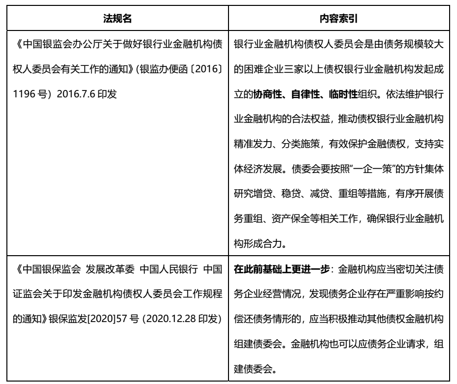 但是隨著《中國銀保監會 發展改革委中國人民銀行 中國證監會關于印發金融機構債權人委員會工作規程的通知》的明確章程,我們清晰看到工作思路的轉變,更多是提前組建,持續監督的思路。