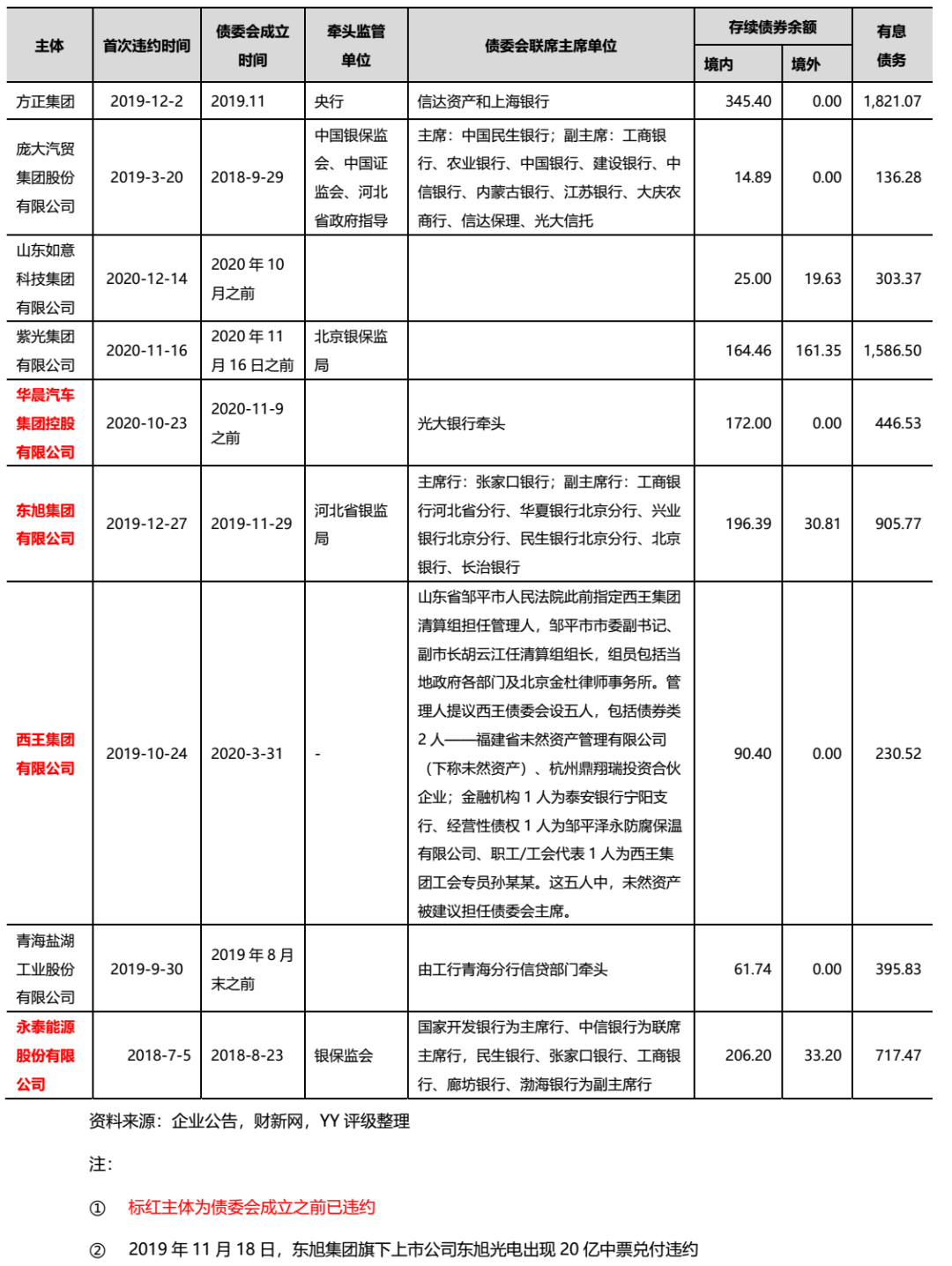 回到現實和歷史,我們統計了債委會運作的情況以及此前的一些已經違約的主體,債委會至少沒有讓事情變得更壞,是起到了相當正面的作用的,細節如下: