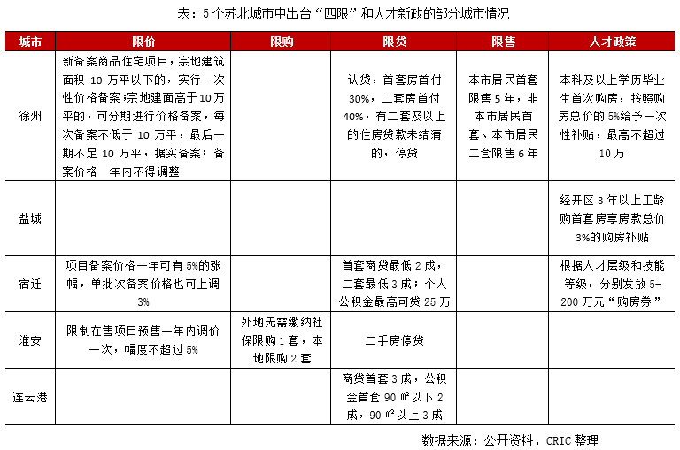 此外,蘇北五城在樓市調控政策層面上也相對寬松,給予了外來資金“炒房”的空間。尤其在核心城市調控趨嚴的背景下,房價不破萬的蘇北城市尚屬“價格洼地”,不乏部分投機者借學區炒作、返鄉置業之名入市,實則對于本地成交量價齊增也起到了推波助瀾的作用。