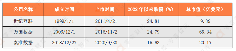 (一)萬(wàn)國(guó)數(shù)據(jù)市值最高,秦淮數(shù)據(jù)市值已超世紀(jì)互聯(lián)