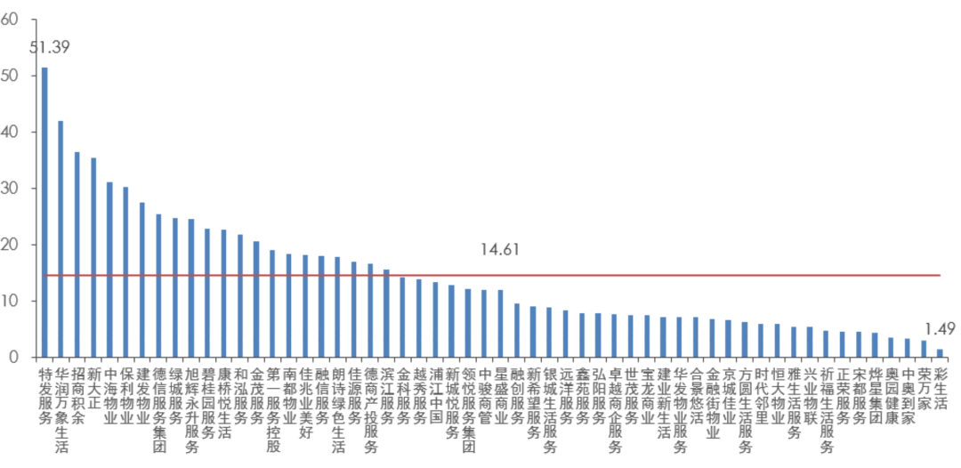 特發服務、華潤萬象生活和招商積余三家市盈率最高,分別為51.39倍、41.92倍和36.49倍。特發服務與華潤萬象生活市盈率也是少有的超過40倍的上市物企。