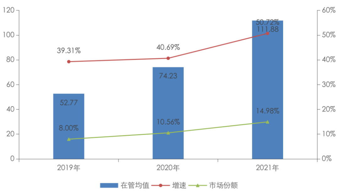 經歷資本市場的跌宕起伏,物企的對于上市也有了更多的思考。提升規模保證絕對實力成為企業的共識,頭部的競爭早已是搶跑的狀態。完整披露2019年至2021年在管面積的47家上市物企,其在管面積總值已由24.80億平方米增長至52.59億平方米,在管面積均值由5276.53萬平方米增長至1.12億平方米,復合增長率45.62%。