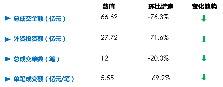 克而瑞CAIC AI監測顯示,2021年1-2月,中國內地大宗物業共成交12筆,交易總額約 67億元,同比降幅76.3%;平均單筆成交額約5.6億元,同比下降69.9%,降幅顯著。