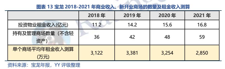 03 投資物業和酒店賬面上還有約***億元的抵押空間。但當前環境下,金融機構在選擇資產和發放貸款時可能會更加謹慎。而從資產質量角度來看,寶龍的商場和酒店布局偏下沉,多布局一二線城市非核區域,以及下沉至三線及區縣,而且近年來商場平均收益呈下滑趨勢,盈利能力有所削弱,加上疫情反復使得商場和酒店經營承壓,商場和酒店資產整體質量一般。