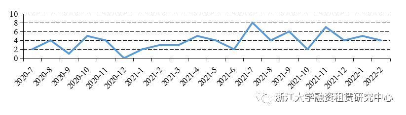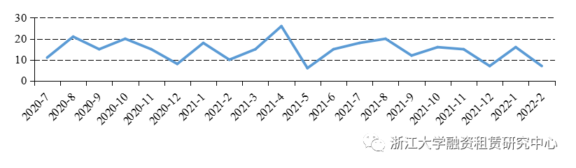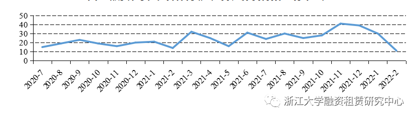 圖1融資租賃公司各月資產(chǎn)支持證券發(fā)行數(shù)量統(tǒng)計(jì)(支)
