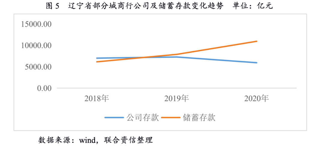 近年來,遼寧省金融機構存貸款規模均保持增長態勢,貸款利率下行,支持當地企業復工復產,推動區域經濟發展。2020年12月,遼寧省新發放人民幣一般貸款加權平均利率同比下降47個基點,普惠小微貸款加權平均利率同比下降76個基點。從投向看,基礎設施建設領域的貸款同比增速達到7.8%,對穩定地方經濟增長起到積極作用;制造業中長期貸款增長5.9%,其中高技術制造業中長期貸款增速達到42.6%。但如前文所述,遼寧省整體經濟環境仍較為低迷,對當地城商行存貸款業務發展帶來一定壓力。一方面,在較為低迷的經濟環境下,當地企業業務擴張意愿不足,部分企業甚至不具備新增債務的能力,加之遼寧省城商行授信趨于審慎,導致其信貸增速有所放緩。從遼寧省金融運行報告中的數據來看,遼寧省2020年區域性中小銀行本外幣貸款同比增長9.3%,增速較上年降低11.2個百分點。從城商行情況來看,由于2020年遼寧省城商行改革及風險化解工作逐步推進,部分銀行未公開披露相應數據,為保證數據可比性,本文采取遼寧省部分已公開年報數據的城商行作為樣本,對其經營狀況加以分析。從選取樣本數據來看,2020年遼寧省城商行貸款同比增長9.97%,增速較上年降低12.47個百分點。另一方面,企業盈利能力減弱,資金鏈趨緊,剩余資金量減少,同時銀行信用分層逐步顯現,導致遼寧省城商行存款拓展壓力上升。從地區整體存款情況來看,2020年末遼寧省非金融企業本外幣存款余額13429.3億元,同比下降12.3%,增速較上年降低8.4個百分點;其中住戶本外幣存款余額42962.9億元,同比增長18.9%,增速較上年提升3.5個百分點。但值得注意的是,住戶存款增加較大程度上得益于定期存款及大額存單等高成本存款規模的上升,2020年末遼寧全省住戶定期存款余額34402億元,同比增長22.2%;個人大額存單發行余額3886.1億元,同比增長9.2%,一定程度上加劇了息差水平的收窄趨勢。從選取樣本數據來看,2018—2020年,遼寧省城商行公司存款規模整體呈下降態勢,儲蓄存款增長較快,且個人定期存款增長較為突出。