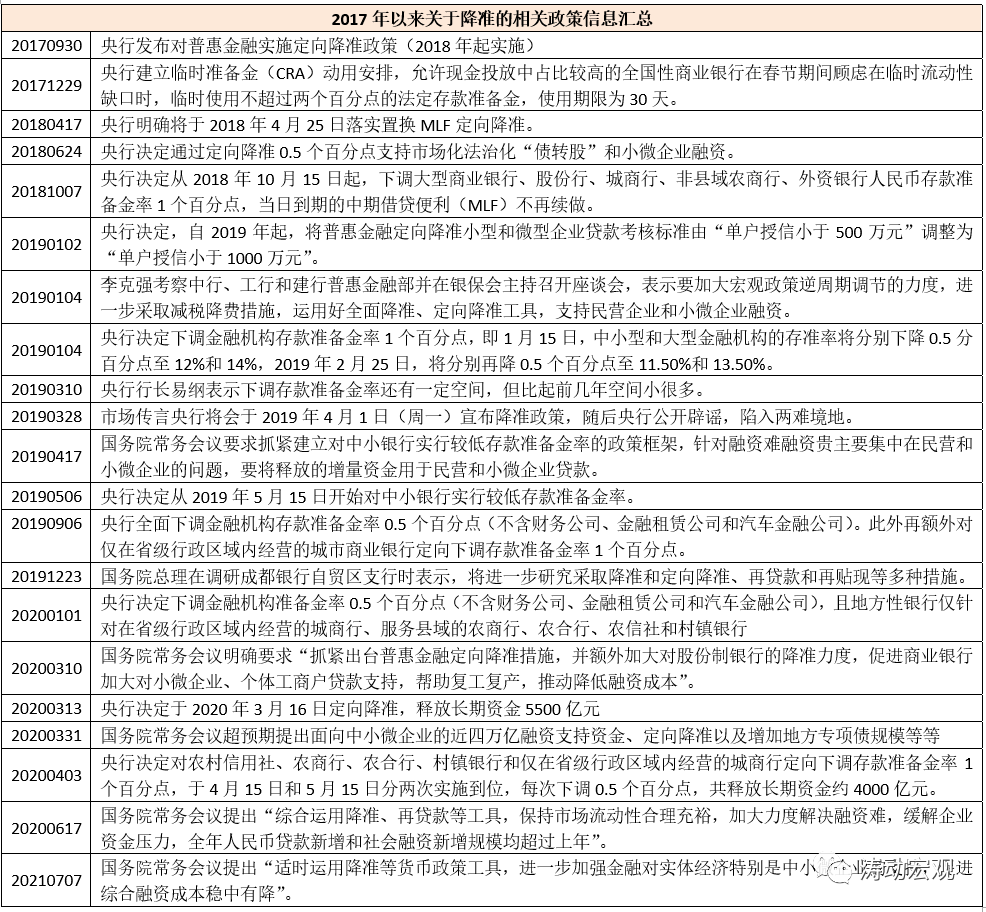 (一)2017年以來降準相關政策回溯
