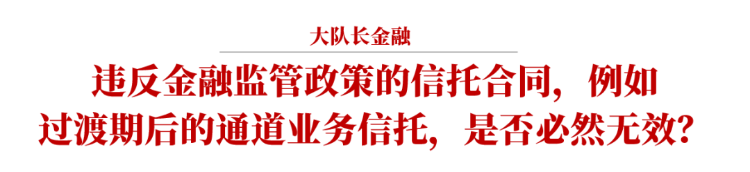 在絕大多數(shù)信托合同效力之爭(zhēng)的案例中,當(dāng)事人主張合同無效的理由主要是違反各類金融監(jiān)管規(guī)定。包括前述場(chǎng)外配資問題、剛兌問題,以及將要討論的信托通道業(yè)務(wù)效力問題,其核心問題都是,違反金融監(jiān)管政策的信托合同是否必然無效,其延伸問題是,違反社會(huì)公共利益如何把握。